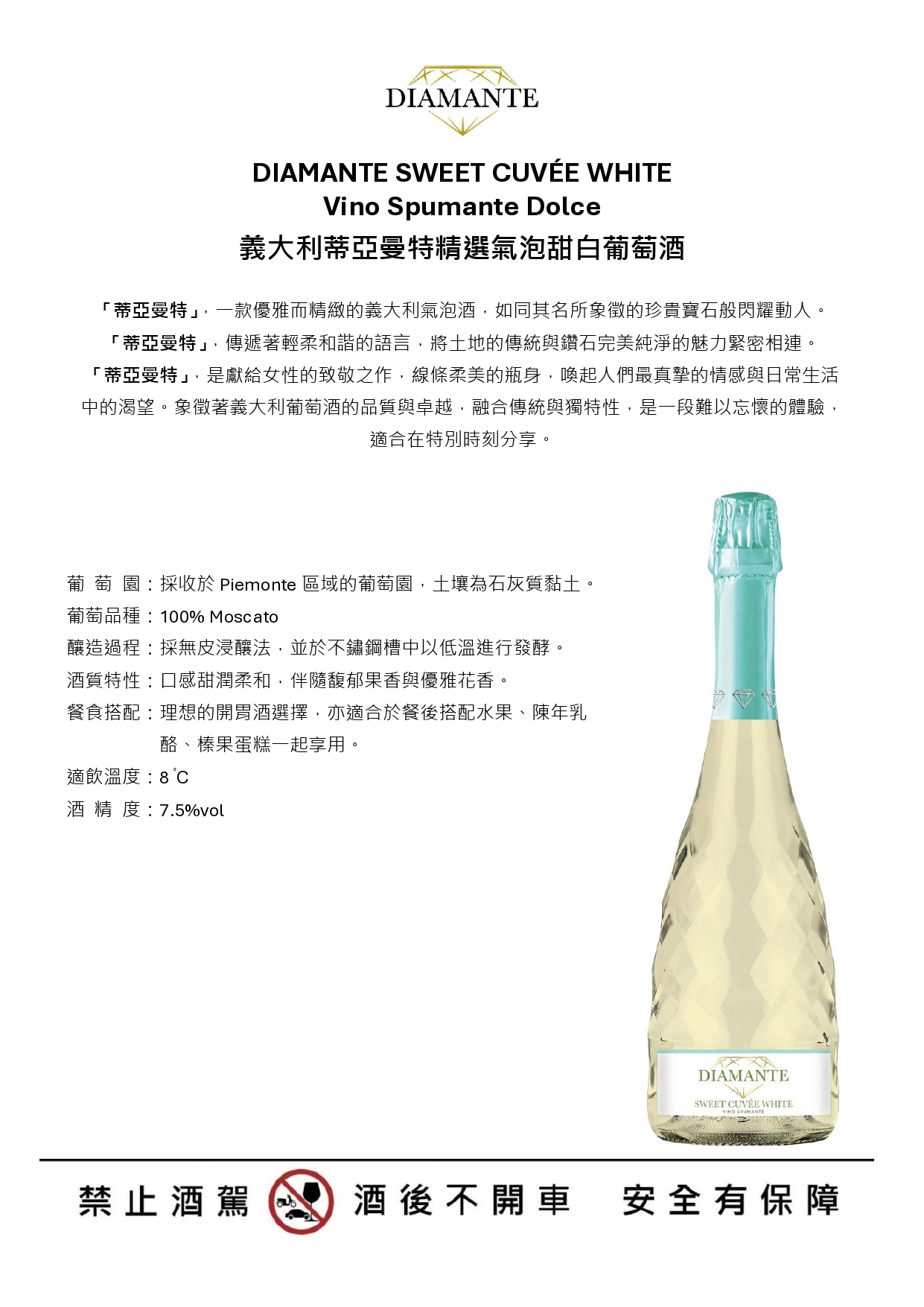 義大利蒂亞曼特精選氣泡甜白葡萄酒